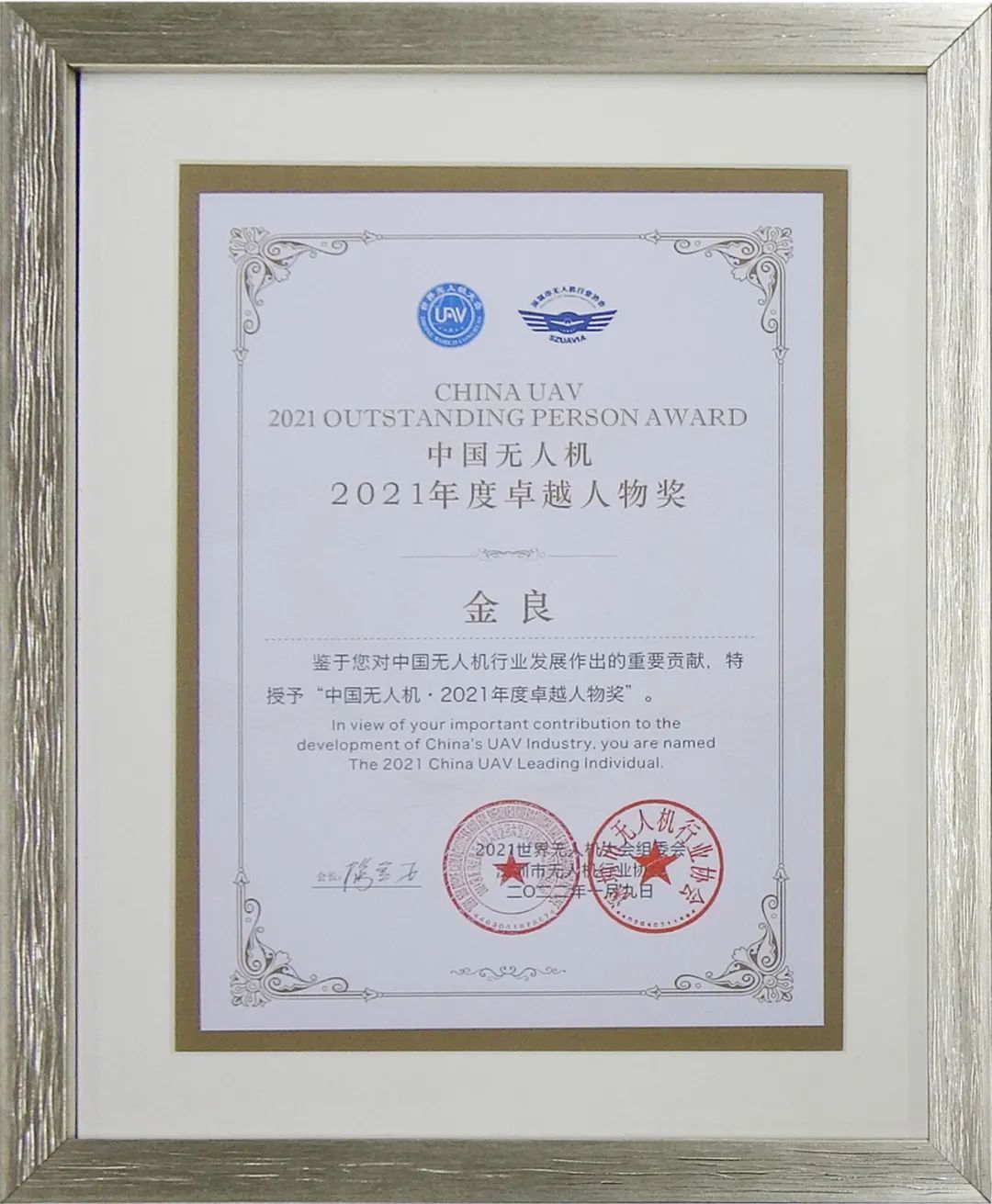 董事长金良荣获“2021年度中国无人机年度卓越人物”奖