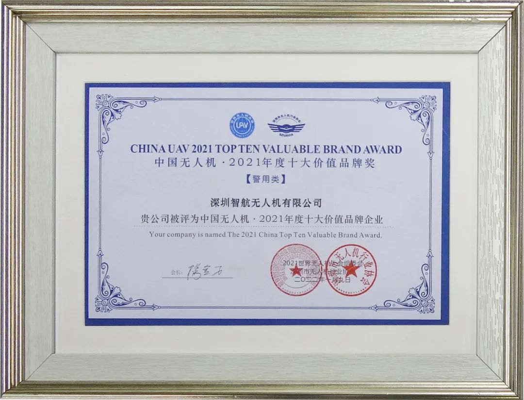 深圳智航荣获“2021年度中国无人机年度十大价值品牌”奖