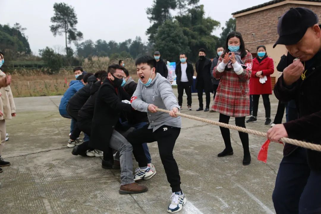 赛场上,双方选手卯足力气,一次次的极限拉扯,一次次的顽强坚持,麻绳中间的红丝带不断的左右移动,选手们各各涨红了脸……
