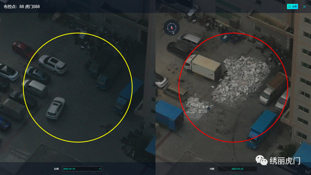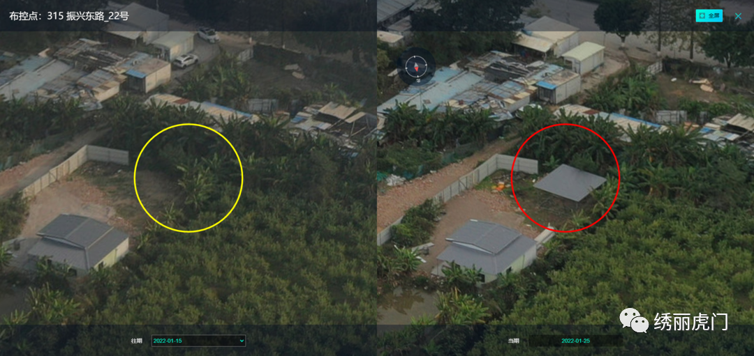 天网监管系统在全镇范围内布建400多个网格航拍监控点,利用高清无人机对全镇共178.5平方公里实施周期性全覆盖航拍巡查,做到重点区域(建成区)每周覆盖2次、一般区域(山林农田区)每周覆盖1次。对每个网格航拍监控点拍摄到的全方位图像,利用智慧云系统AI智能识别技术进行图像前后叠合对比,精准比对出违法建设及城市管理执法方面等违法信息数据,尤其是针对违法建设行为进行航拍比对,能更全面、更及时地发现建筑物变化信息(包括建筑物准确位置、坐标参数、变化概况等)。该系统自动推送相关变化图像比对信息结果至属地社区及城管分局片区工作站、业务组室进行实地核查处置。对确认违法建设等违法行为属实的,由城管分局片区工作站、业务组室联合属地社区督促落实整改,及时消除违法影响。如违法建设通过航拍比对发现违建行为的,城管分局将立即上报镇“两违”办采取联合执法快速拆除处理,做到发现一宗、拆除一宗,确保违建“零新增”。01