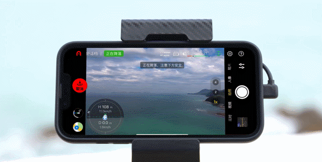 点击图传界面左侧的[返航] 按钮,选择[滑动降落] 飞行器将自动返航。长按遥控器[Home] 键,飞行器也会自动返航。