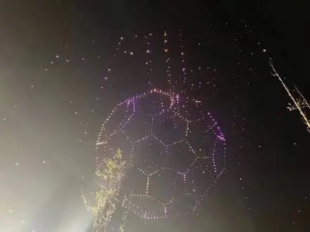 2月13日,1000架无人机在苏州太湖足球基地上空进行表演,这些无人机排出了各种画面,向获得亚洲杯冠军的女足姑娘们致谢。(记者 张晨瑆 孙云岳 张昊 图片由...