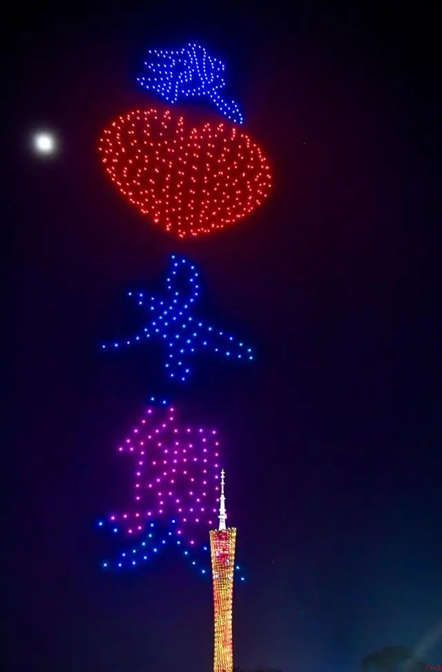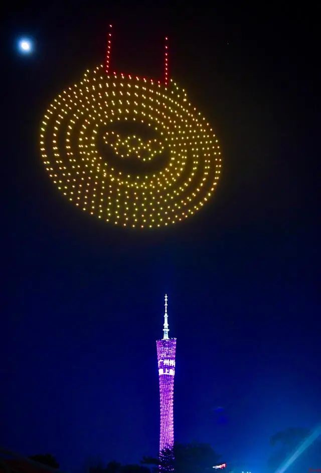 无人机随着颜色的变化,变换成本届冬奥会的金银铜三个颜色的奖牌,冬奥运动员如星璀璨,奖牌是健儿们追逐的荣光,见证着他们在比赛中不断超越自我。值得一提的是,冬奥与广州的缘分还体现在奖牌设计上,根据官方材料注明,冬奥会奖牌的设计创意参考了广州南越王墓出土的玉璧。