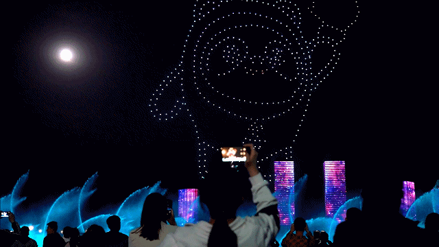 2月14、15日晚400架无人机在集宁上空集结霓虹的光影璀璨闪耀夜空融合灯光、声效等元素上演极致光影艺术为观众带来前所未有的感官体验上演一场精美绝伦的光影盛宴