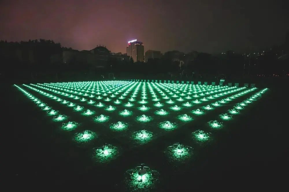 震撼!百架无人机点亮集宁夜空,上演大型无人机灯光秀…