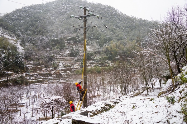 2月17日晚,新昌县遭遇暴雪、强降温天气影响,部分配电线路不同程度故障停电。浙江新昌县供电公司立即启动恶劣天气应急预案,迅速组织相关人员,对辖区内的配电线路开展特巡抢修,保证百姓安全用电。