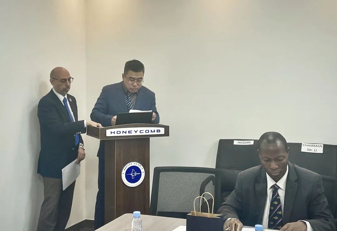 Li Wei, Chairman of Honeycomb Aerospace, and the leaders of ALIT and AVIC warmly received them,introduced the development history and development vision of Honeycomb Aerospace. Chairman Li Wei said that Honeycomb Aerospace has been committed to going global since its establishment, especially in recent years, it has actively explored overseas markets and expanded business cooperation with countries in the Middle East and Africa.
