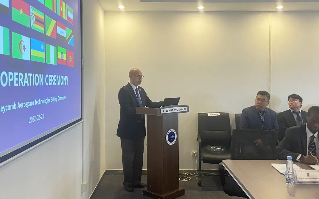 蜂巢航宇董事长李威及航天长征、中航国际众位领导对其进行热情接待,对各位外宾的来访致辞欢迎,并介绍了蜂巢航宇的发展历史和发展愿景。李威董事长表示,蜂巢航宇自创办以来致力于走向世界,特别是近年来积极开拓海外市场,拓展与中东非洲各国的业务合作,希望以此次交流为契机,促进蜂巢航宇与各国之间的深入合作。