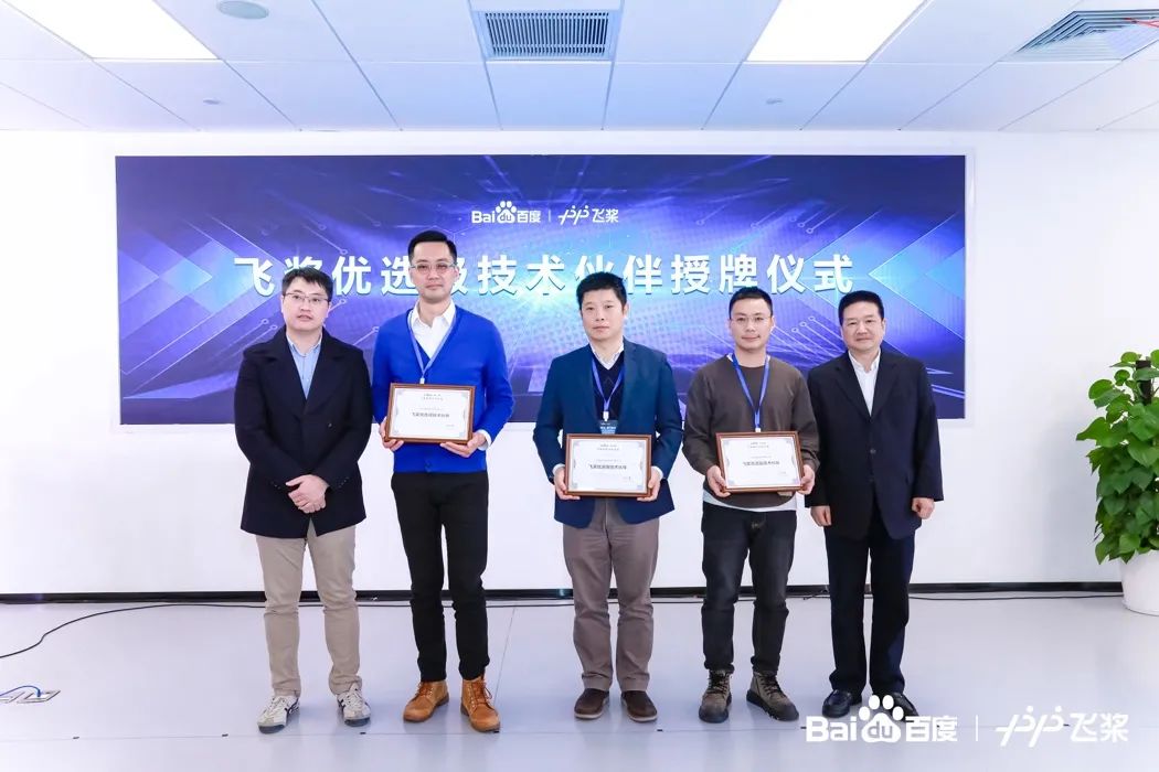 据了解,通过本次“飞桨优选级技术伙伴”认证的企业仅有三家,复亚智能凭借丰富的行业经验以及典型案例的落地能力从众多科创企业中脱颖而出,成为百度飞桨认证企业之一。在授牌仪式上,复亚智能获得由市科委、新区领导颁发的“飞桨优选级技术伙伴”证书。