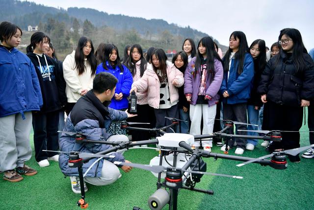 ↑3月2日,在宣恩县中等职业技术学校,学生学习无人机基本操作与维护。