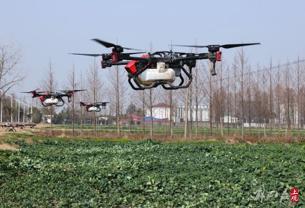 光明农发集团各大基地大力推进智慧农场建设,全面推广无人机三飞(无人飞机防病、无人飞机播种、无人飞机巡查)技术和智能灌溉技术,实现了用药、施肥全程无人机作业,让农业生产更加低碳高效,以现代化科技助力春耕生产。