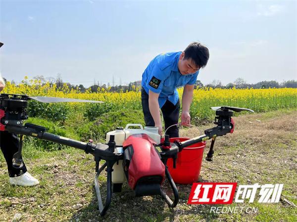 红网时刻3月13日讯(记者 向婉 实习生 吴慧敏) 阳春三月,万物生长,农民也开始忙碌起来了。益阳市赫山区八字哨镇的新农人赵建军早早便忙活了起来,早上七点他要赶到油菜花农田工作地点,为客户进行农业无人机喷洒农药工作。