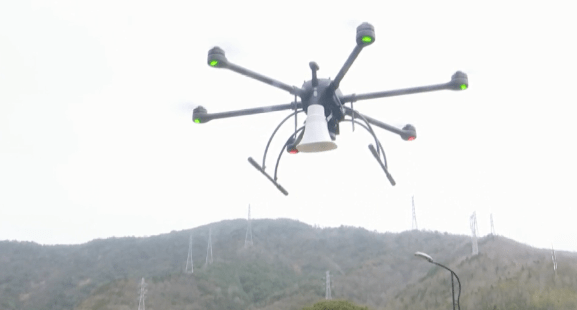 当天上午,在展茅街道沙井村干施岙,展茅派出所民警完成调试后将一架挂载扩音喇叭的无人机“放飞”上天。该无人机在村上空不停盘旋,宣传发动群众做好新冠疫苗接种工作。