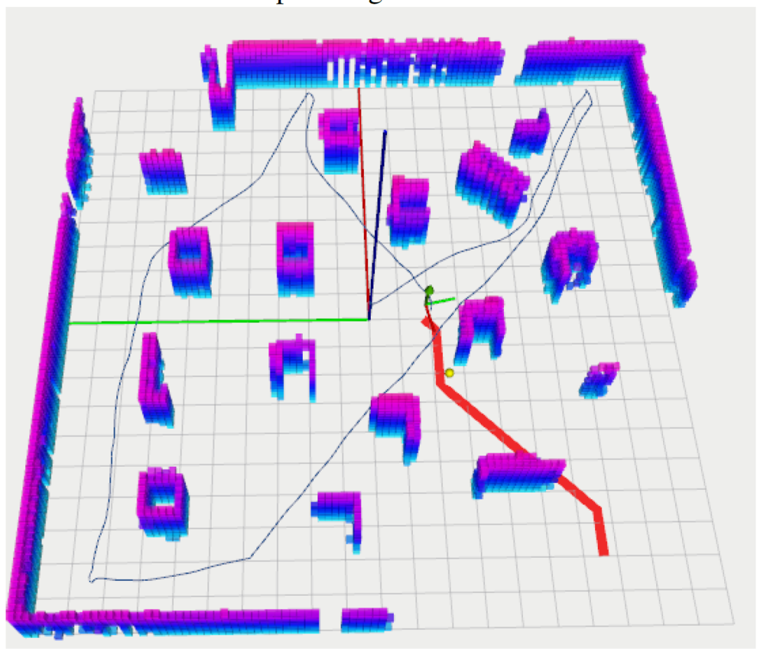 如图6所示,模拟器中集成了一个全局本地映射工具包“glmapping”。该地图工具包是一个3D占用像素地图,专为MAV或移动机器人导航应用而设计。