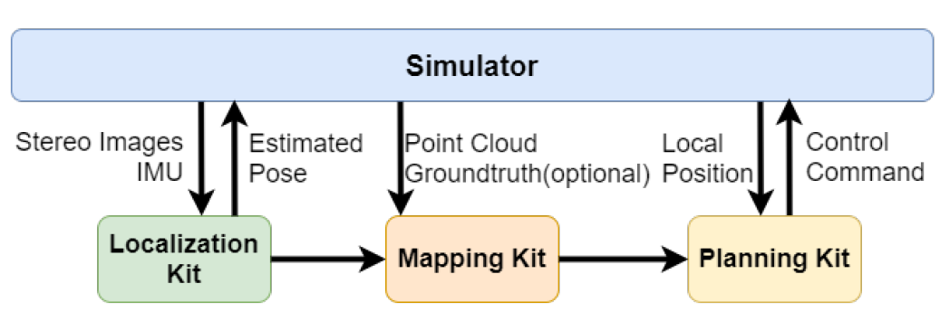 借助现代人工智能算法,多旋翼无人机可以成为智能代理,在未知环境中导航。给定目的地,无人机可以控制环境,重建环境地图并动态规划到目的地的轨迹。这项工作的目的是构建一个端到端的网络用于研究和教育目的的模拟环境。这里,端到端指的是在一个模拟器中验证所有感知、反应和控制算法的能力(图1a)。
