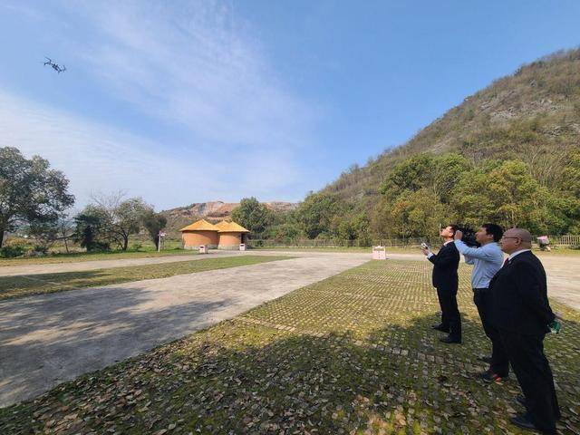 观察员与检察官在青云塔文物点操作无人机拍照取证