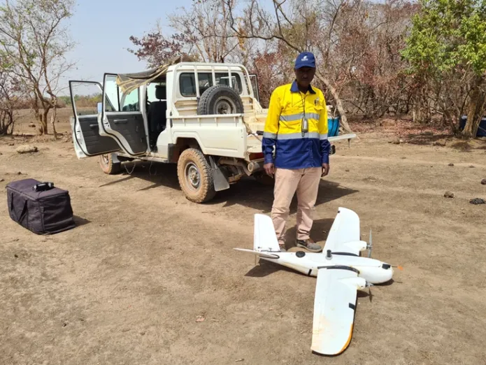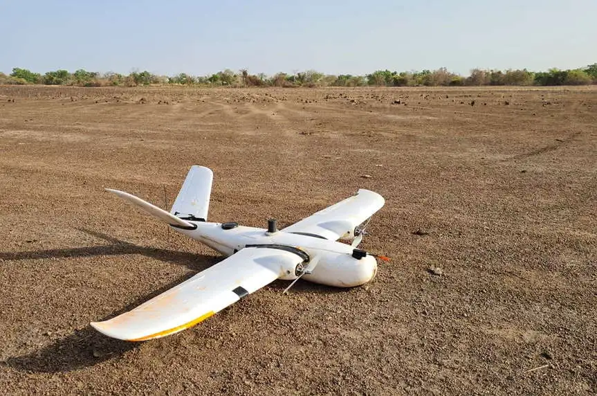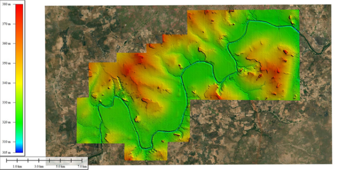 3DroneMapping被任命为顾问,对马里南部的一个潜在锂矿区进行空中勘测。该项目总面积约为18000公顷。客户要求制作正射影像和DTM产品。控制点被放置在场地周围。使用测量级GPS对这些点进行测量,精度在20mm以内。由于基线较长,RTK不适合作为一种选择,因此对原始GNSS测量进行了后处理。由于电力供应受限,飞行作业历时3天,平均每天飞行3次。在非常具有挑战性的条件下,总共飞行了850公里。每天的温度经常超过40℃,风速超过14米/秒。