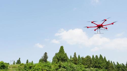 对于人员无法及时到达的火源,大载重无人机可在第一时间搭载干粉灭火球飞到火源中心配合消防人员内外双向灭火,延缓火情,避免火势持续扩大。