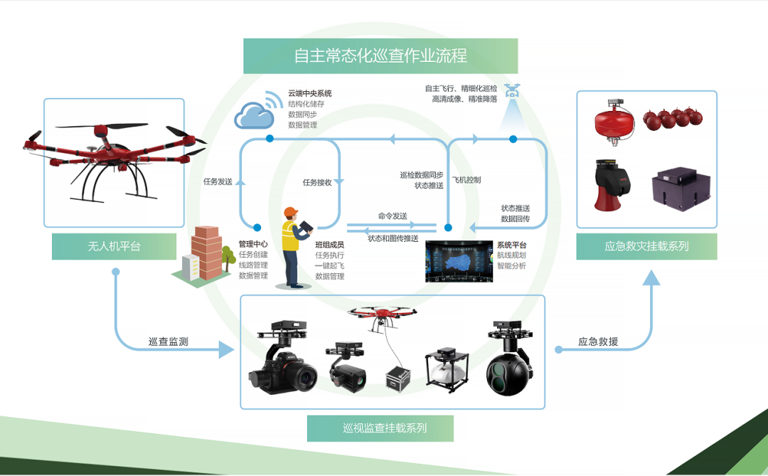 对森林进行全天候侦察,寻找火点;70min的长续航、高温跟踪、高温报警、指点移动,指点测温、自动巡检。
