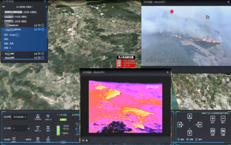 可远距离对着火点进行火势监控,视频实时回传,通过回传画面调度平台进行过火面积计算,火势蔓延分析并快速输出灾情评估数据报告