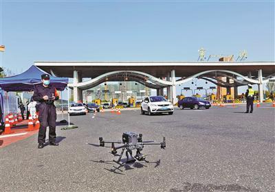 在该高速卡口,数架无人机24小时就地待飞,通过车轮式执勤模式,采取高音喇叭、定点巡航等方式,打造“高空巡防+地面设卡”立体化的防疫网络。(记者陈朝霞 通讯员蔡迪段晓鹏)