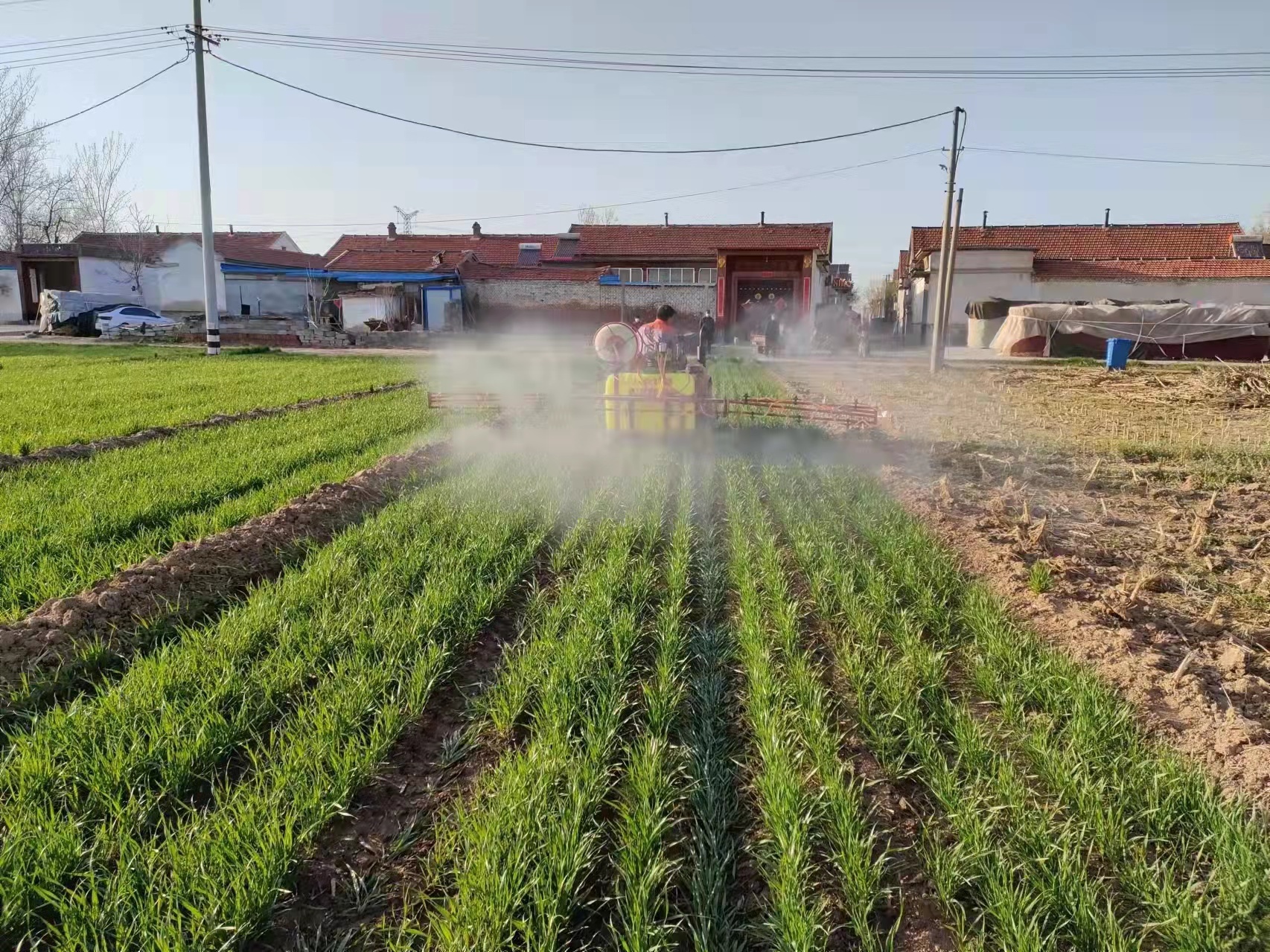 眼下正是小麦拔节期,也是小麦纹枯病预防的最佳时间,更是疫情防控工作的关键时期。为了不耽误地里的小麦进行病虫害防治,让村里的群众安心在家,全面做好疫情防控工作,毛旺庄村村党支部书记翟玲娣协调农药和打药机械,村里10名种地能手出义务工,对全村小麦进行统一打药;张文台村村党支部书记张希强组织村义务工使用机械喷洒除草剂,为麦田规模化除草。