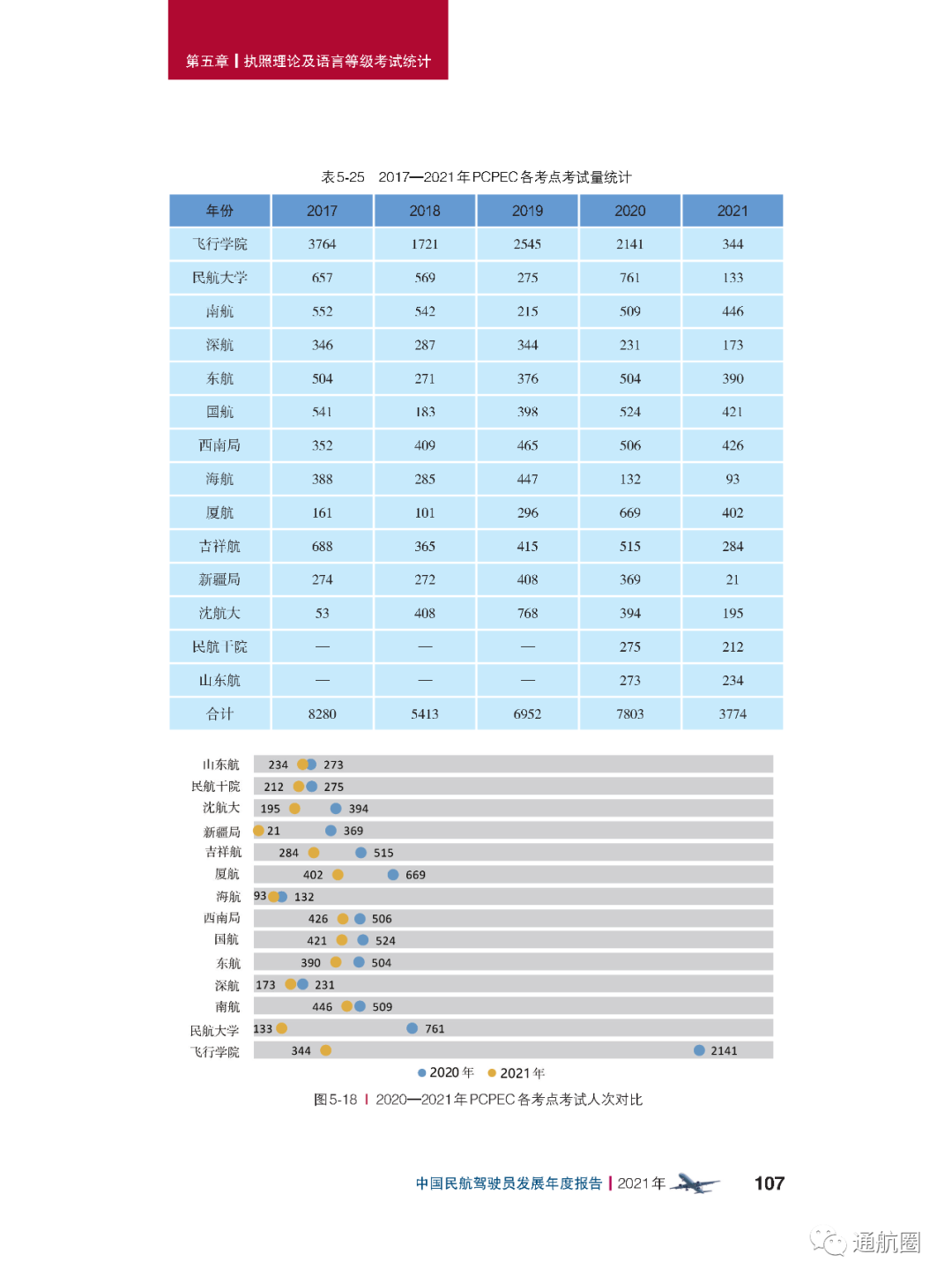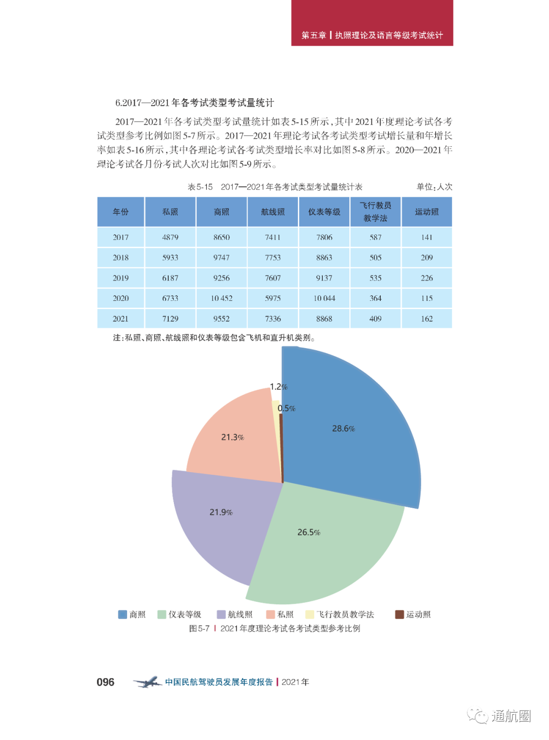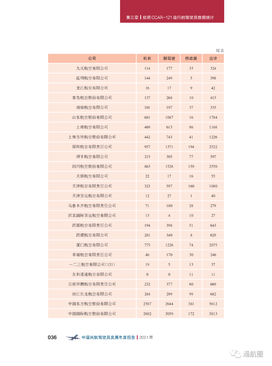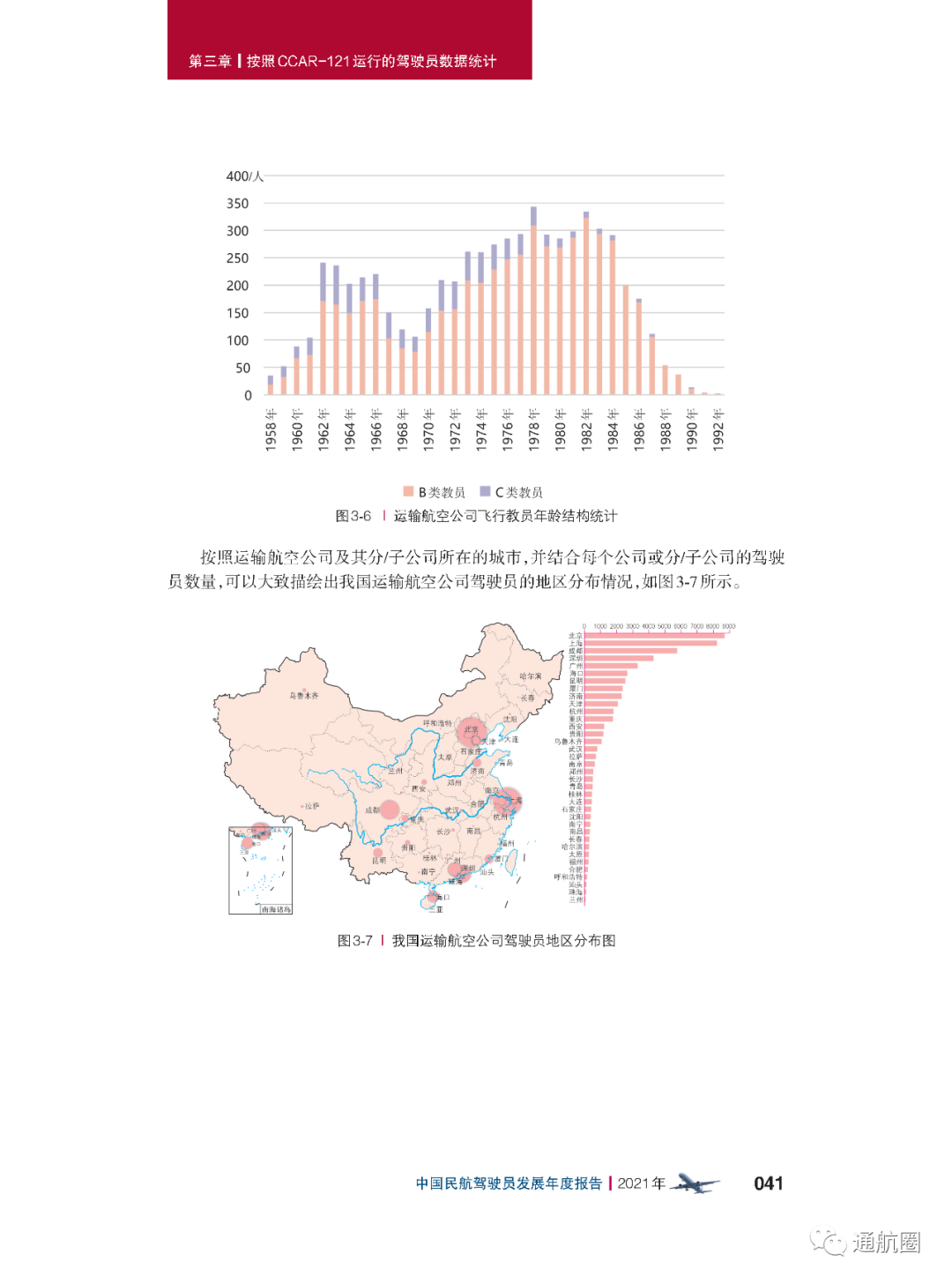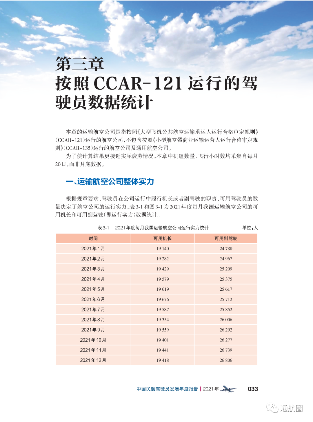 非121部驾驶员数据统计方面,按照CCAR-91 和CCAR-135 运行的公司,多为实施工农业作业和小型航空器商业运输的飞行,这两类公司总体规模较小且运行模式比较复杂,有的公司既有按照91 部运行 的种类,也兼营135 部运行的种类。报告将两类公司合并进行驾驶员的统计。 截至2021 年12 月31 日,CCAR-91 和CCAR-135 运行的两类公司驾驶员共计3803 人(141 部飞行学校除外),其中商照3254 人,航线照549 人。我国的驾驶员航校主要分为按照CCAR-141 进行训练的飞行学校和按照CCAR-61 进行训练的培训机构,2021 年接受飞行训练的学员共7629 人(含2021 年毕业学生和停训 学员),从事飞行教学的教员共1419 人。此外,政府事务及事业单位驾驶员数量为613人,具体如下: