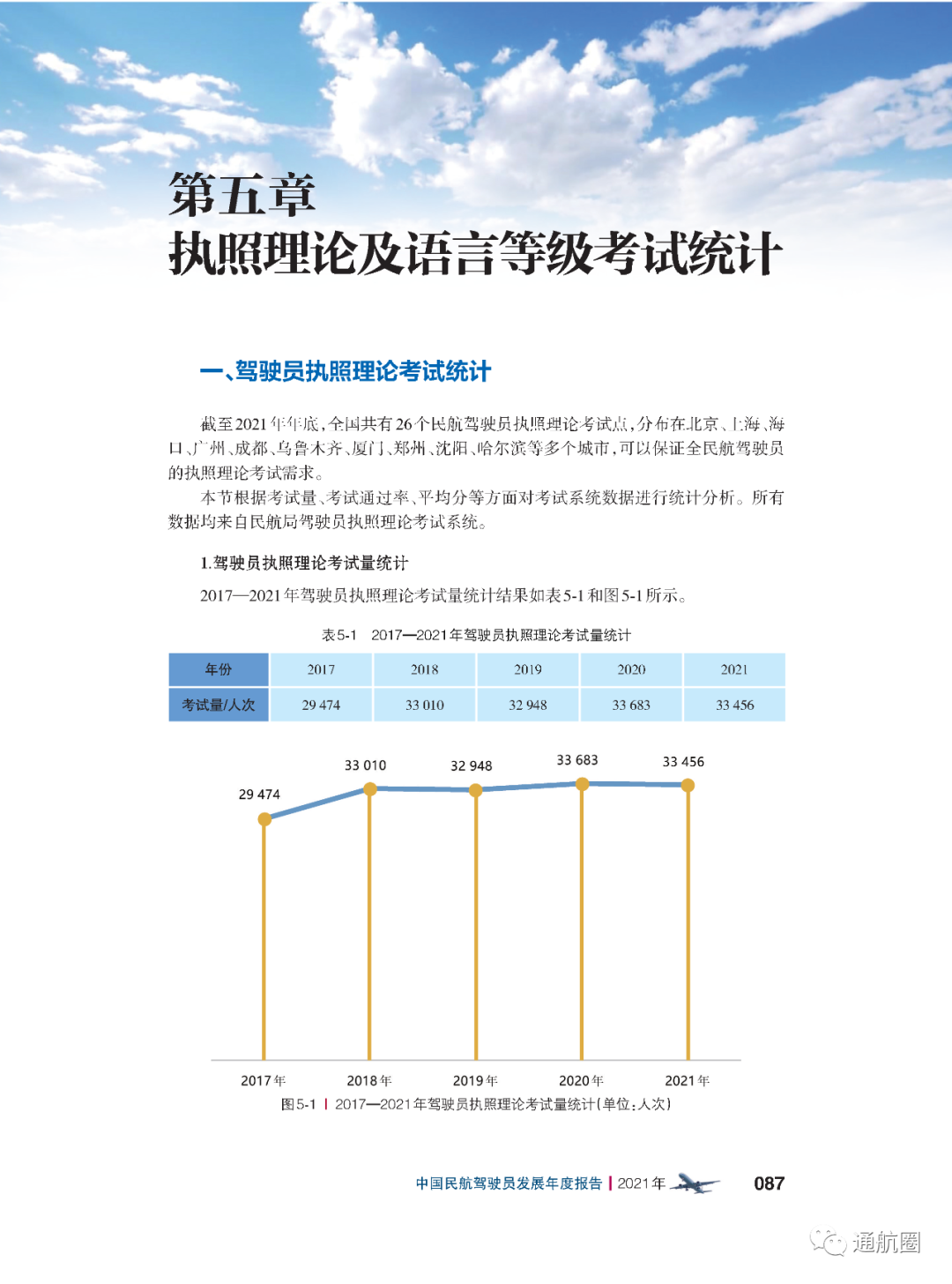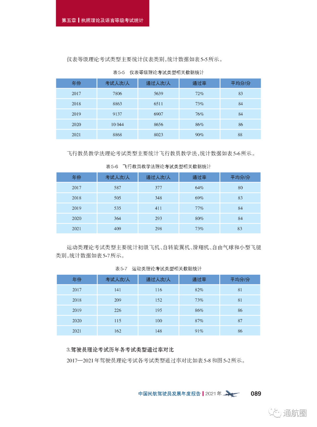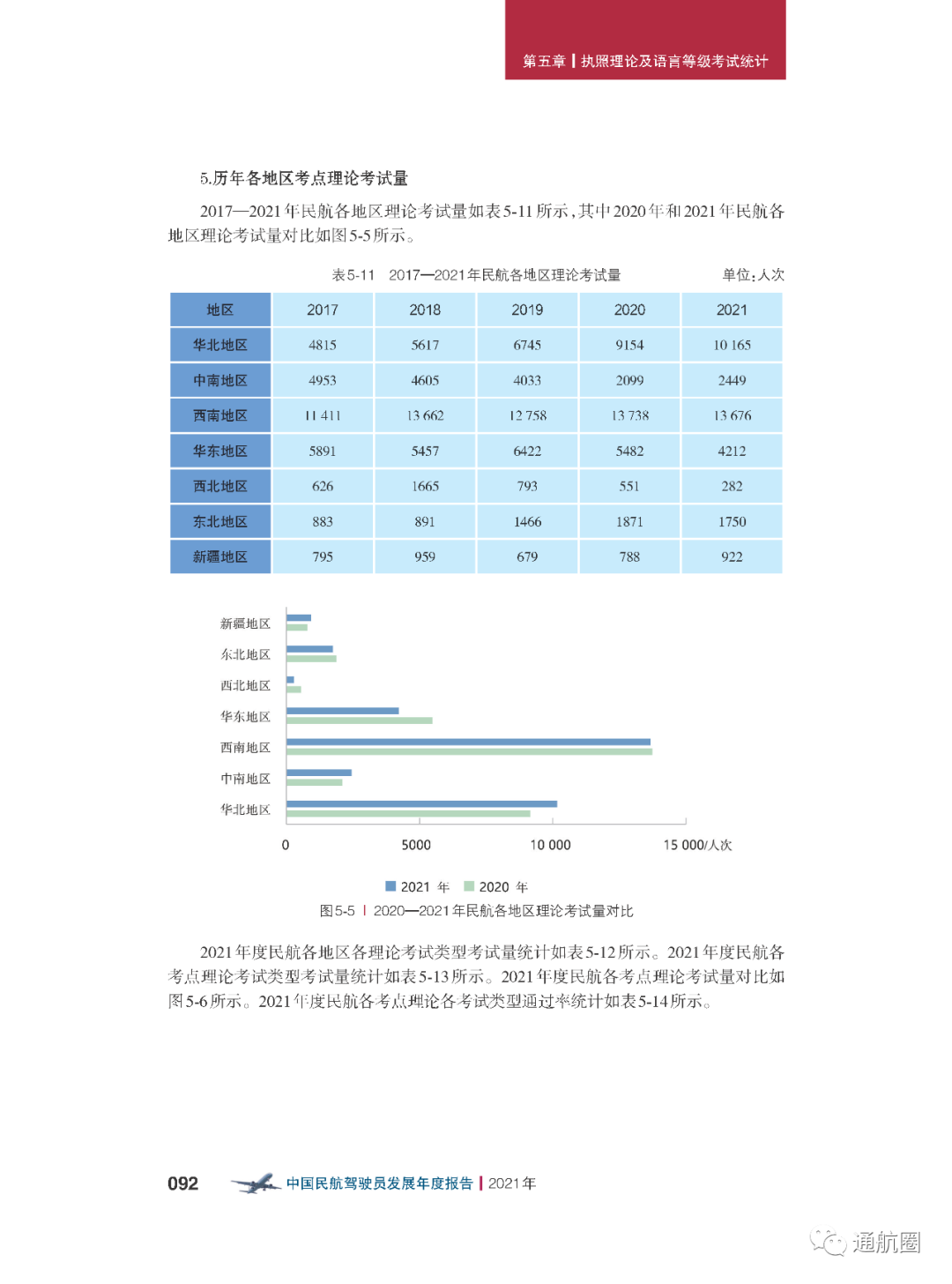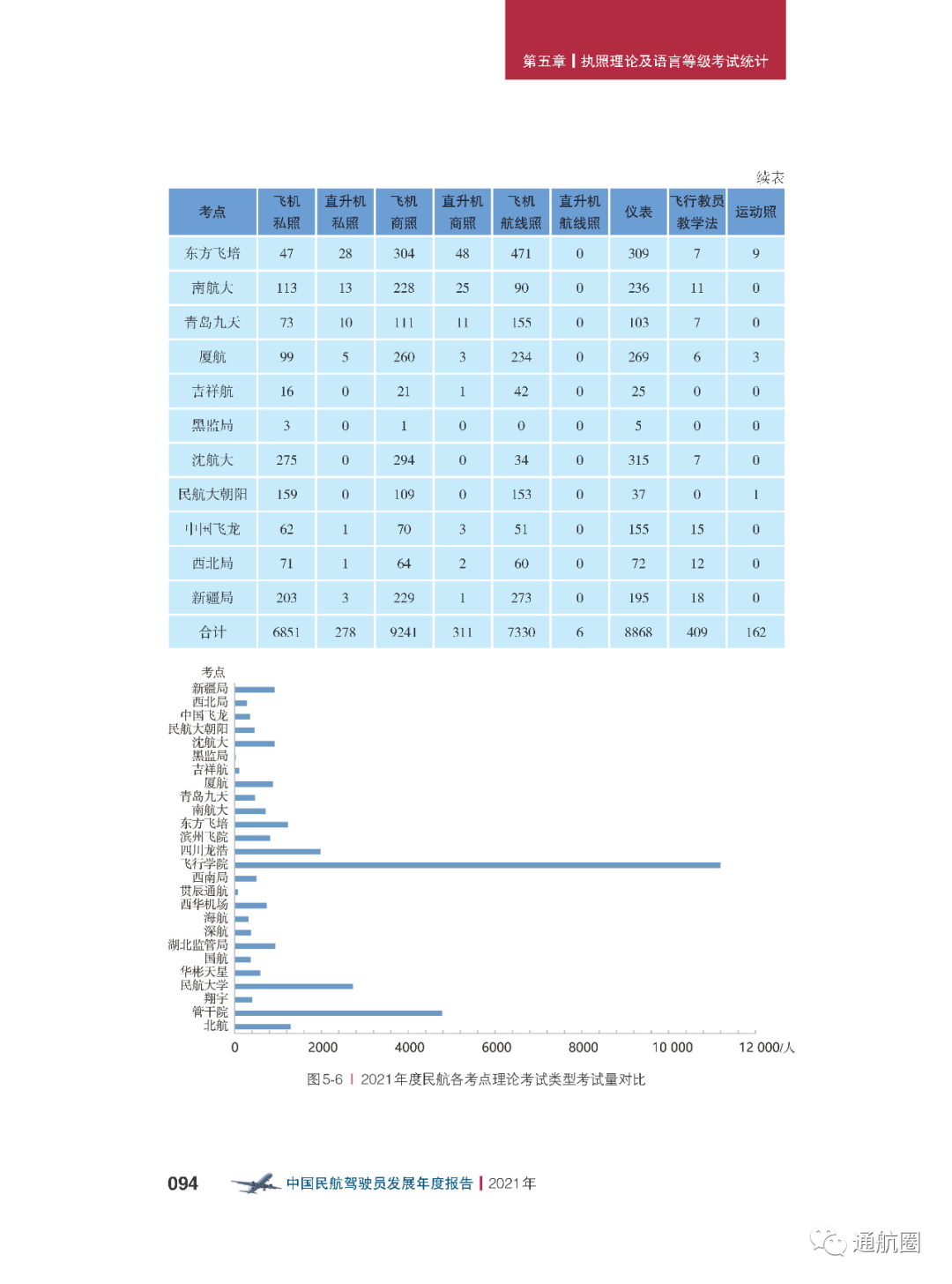 非121部驾驶员数据统计方面,按照CCAR-91 和CCAR-135 运行的公司,多为实施工农业作业和小型航空器商业运输的飞行,这两类公司总体规模较小且运行模式比较复杂,有的公司既有按照91 部运行 的种类,也兼营135 部运行的种类。报告将两类公司合并进行驾驶员的统计。 截至2021 年12 月31 日,CCAR-91 和CCAR-135 运行的两类公司驾驶员共计3803 人(141 部飞行学校除外),其中商照3254 人,航线照549 人。我国的驾驶员航校主要分为按照CCAR-141 进行训练的飞行学校和按照CCAR-61 进行训练的培训机构,2021 年接受飞行训练的学员共7629 人(含2021 年毕业学生和停训 学员),从事飞行教学的教员共1419 人。此外,政府事务及事业单位驾驶员数量为613人,具体如下: