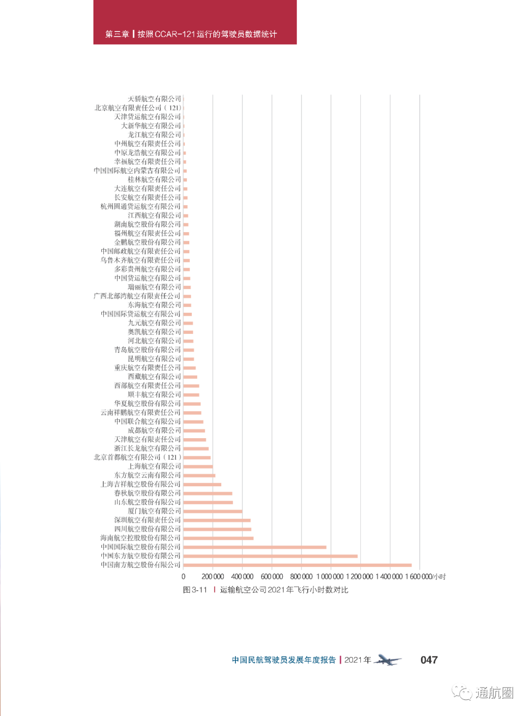 此外,报告介绍,121部中,根据航空公司每个月的总飞行小时以及当月可用机组数,可以计算出公司机组的疲劳系数。如果涉及远程航线、高原航线等需要增加机组人数时,疲劳情况会更加严重;货运公司通常以夜航为主,容易突破人的生理极限,造成驾驶员疲劳。报告专门就东航等各家航空公司的一般运行情况,对驾驶员的疲劳情况进行了统计分析。