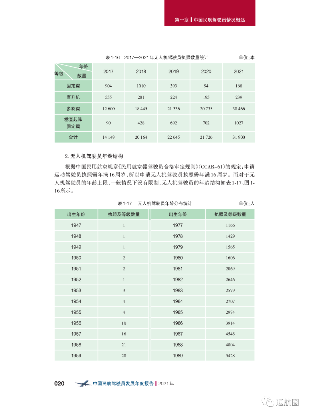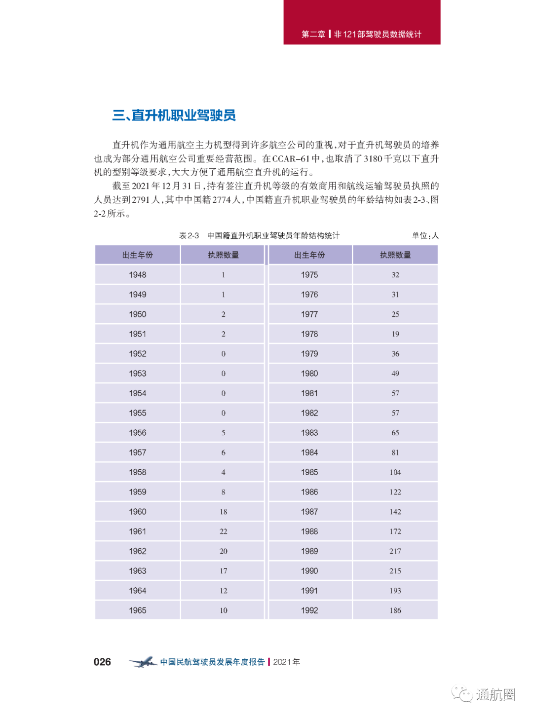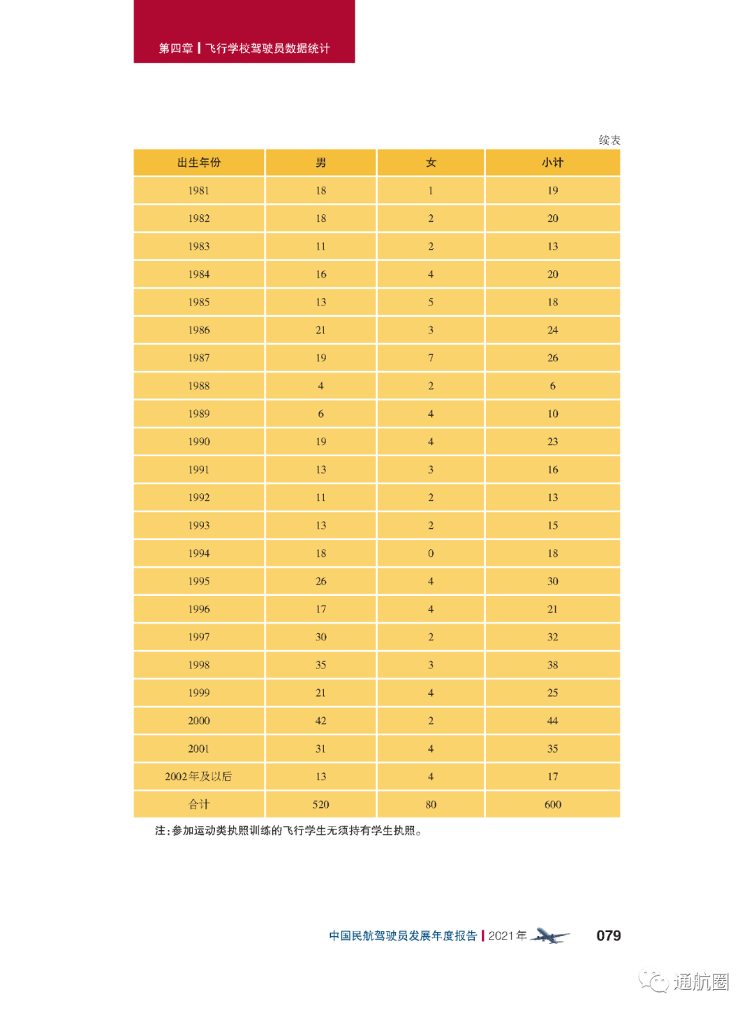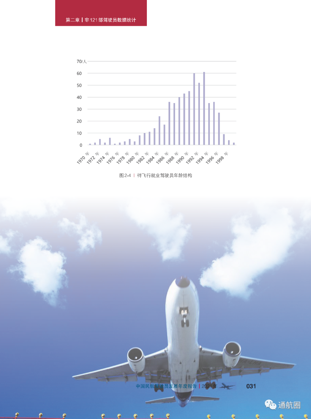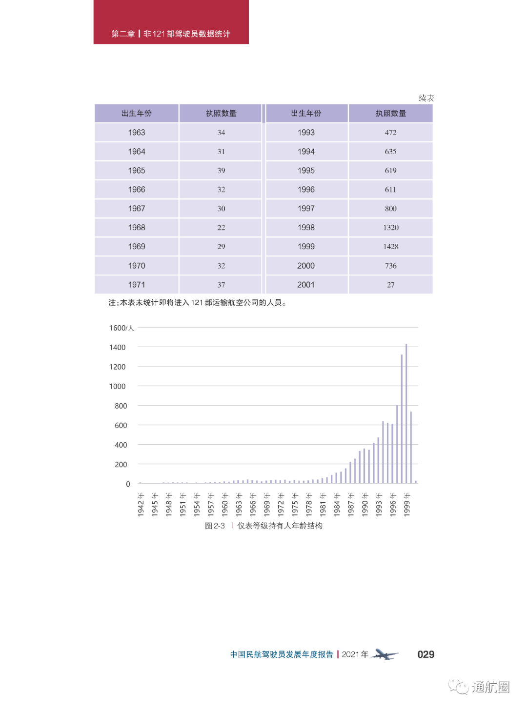 报告统计的“待飞行就业驾驶员”主要是统计1970 年以后出生,在航校非整体课程训练取得商照超过一年或整体 课程训练取得商照超过两年,仍没有固定工作单位的人员。共计599人,其中,80后、90后的待飞行就业驾驶员较多。