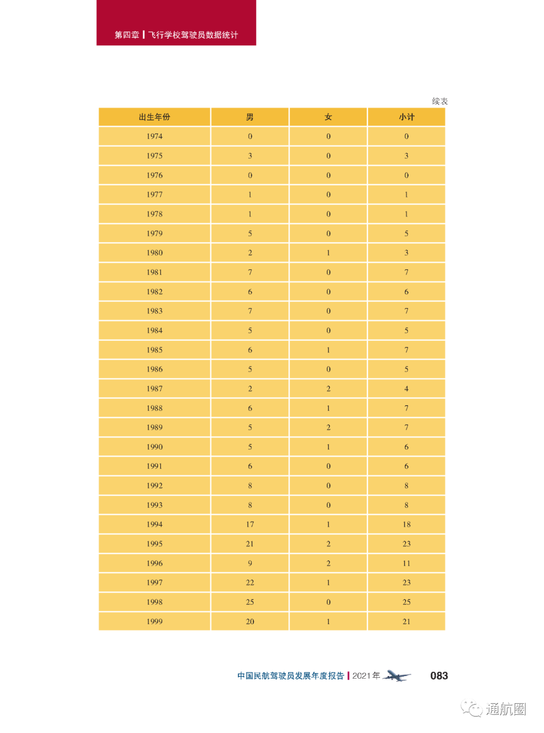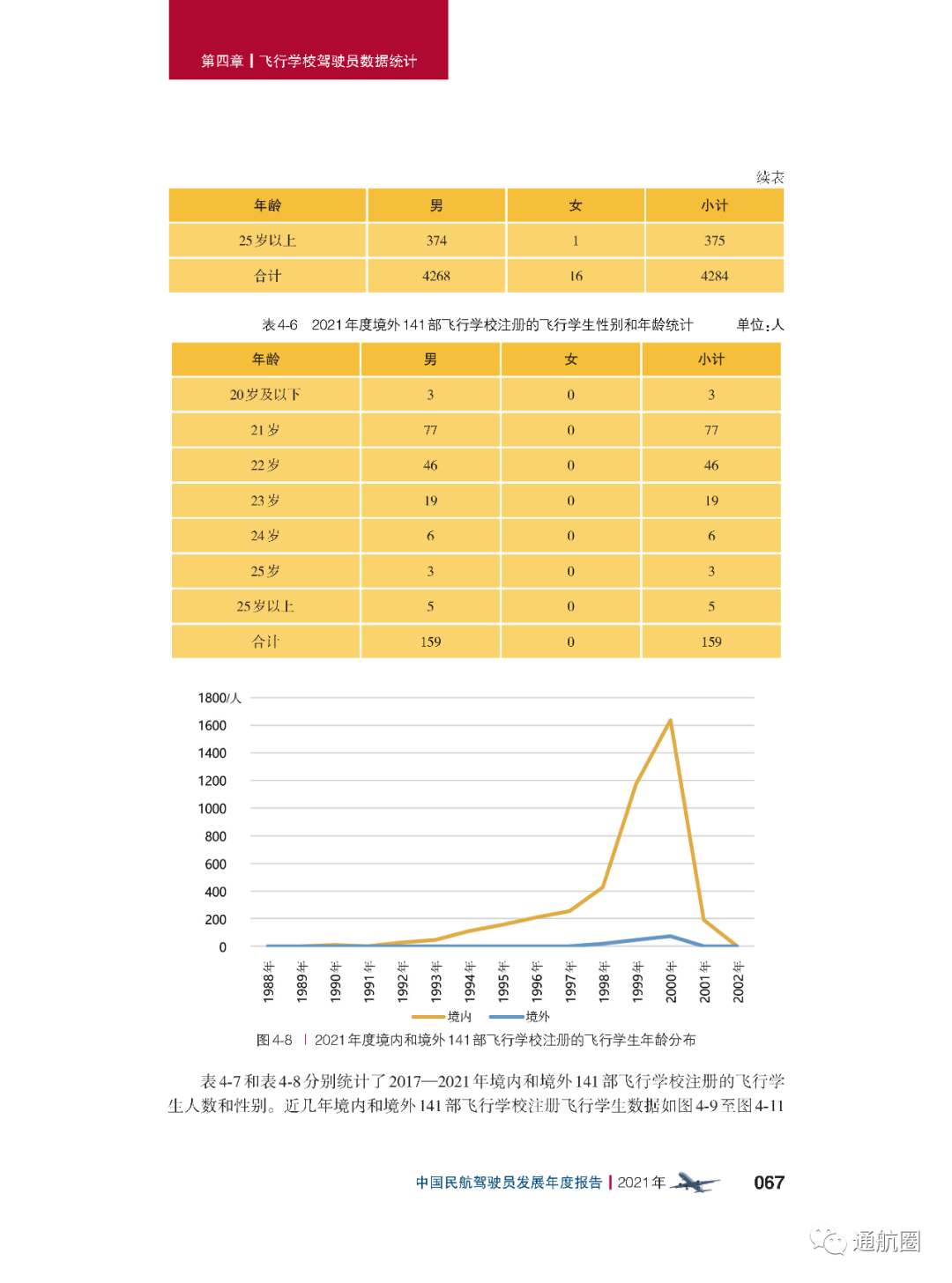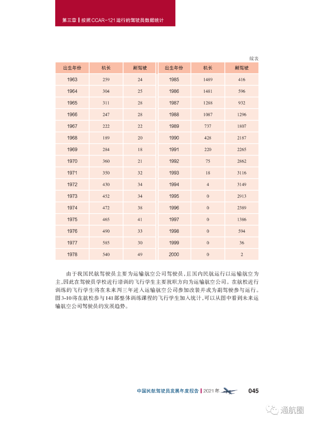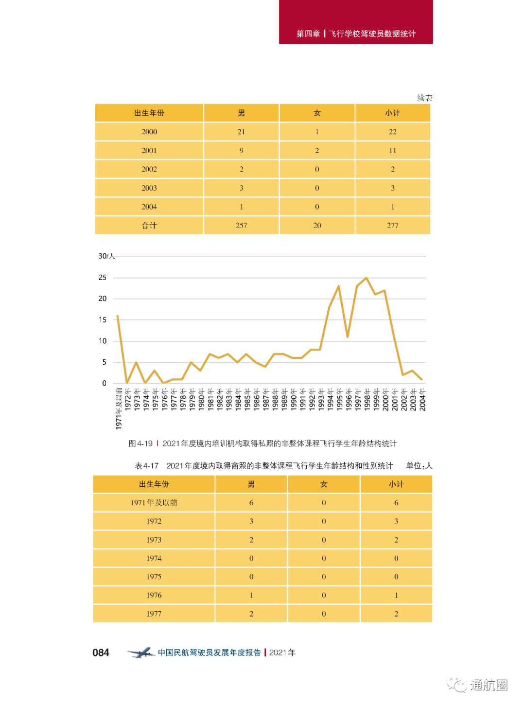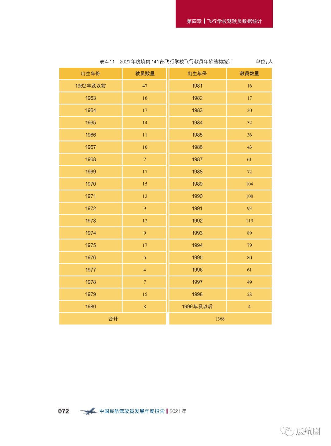 报告统计的“待飞行就业驾驶员”主要是统计1970 年以后出生,在航校非整体课程训练取得商照超过一年或整体 课程训练取得商照超过两年,仍没有固定工作单位的人员。共计599人,其中,80后、90后的待飞行就业驾驶员较多。