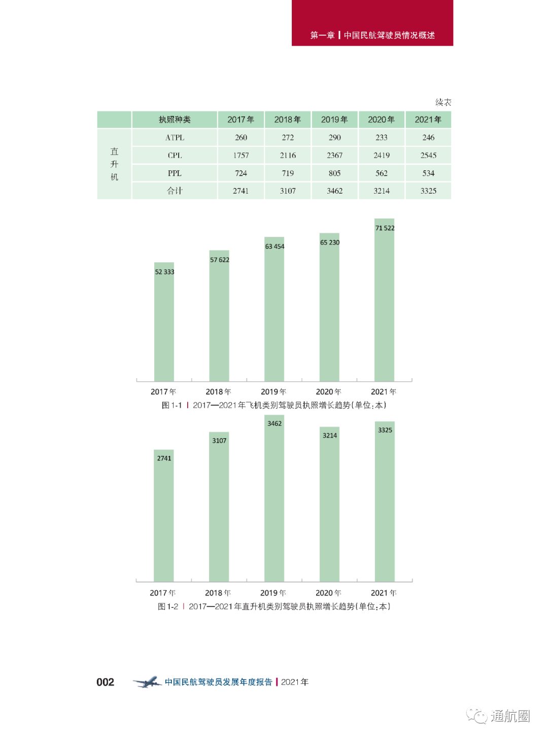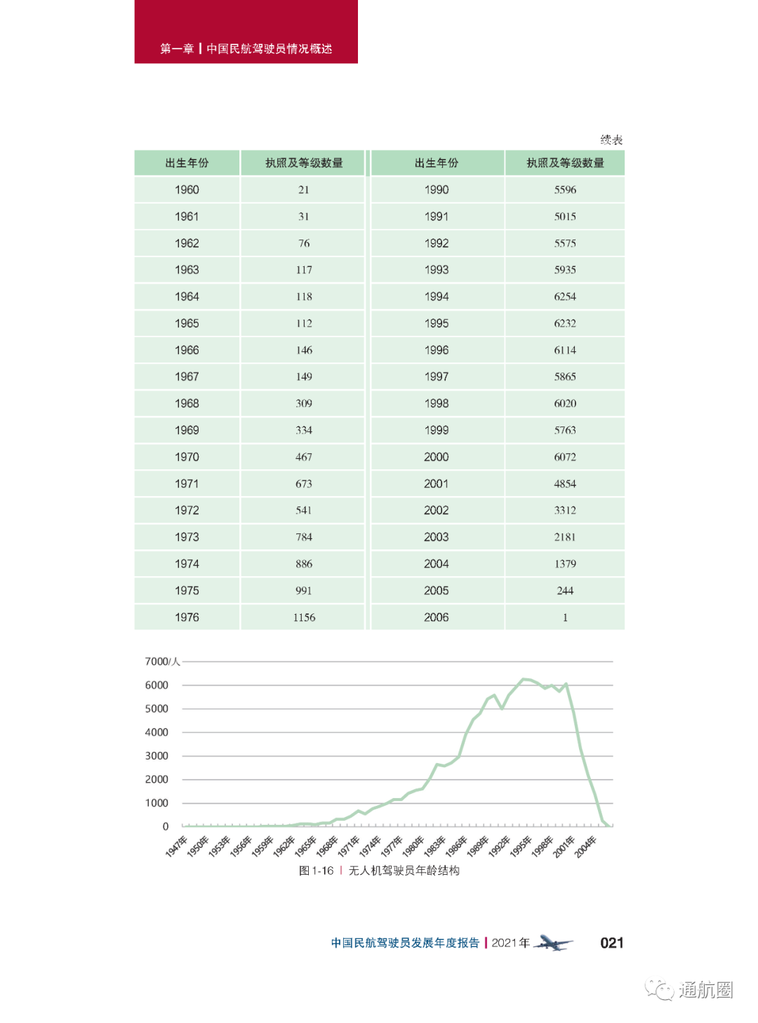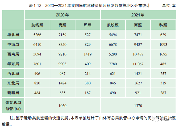 近日,民航局飞标司正式发布《中国民航驾驶员发展年度报告(2021年版)》。根据报告,截至2021 年12 月31 日,中国民用航空局颁发的有效民用航空器驾驶员执照总数为 76236 本,其中运动驾驶员执照(SPL)1515 本,私用驾驶员执照(PPL)4822 本,商用驾驶员 执照(CPL)42445 本,多人制机组驾驶员执照(MPL)187 本,航线运输驾驶员执照(ATPL) 27267 本。此外,无人驾驶航空器(无人机)有效驾驶员执照120844 本,其中超视距驾驶员执照数量为38476本,视距内驾驶员执照数量为78695被,教员执照数量为3673本,主 要分布在各民用无人机生产研发企业、相关应用单位以及大专院校等(机型分布中最多的是多旋翼无人机,而垂直起降固定翼无人机执照数为1027本)。截至2021 年,持有中国民用航空局颁发的有效驾驶员执照的港澳台驾驶员共计304 人,外籍驾驶员共计3359 人。据介绍,由于CCAR-61 第四次修订规定驾驶员执照的有效期为六年,加上新型冠状病毒肺炎疫情对飞行训练活动的影响,2020 年度驾驶员执照增速明显放缓。随着抗击疫情阶段性胜利的取得,驾驶员执照增量在2021 年大幅回升。