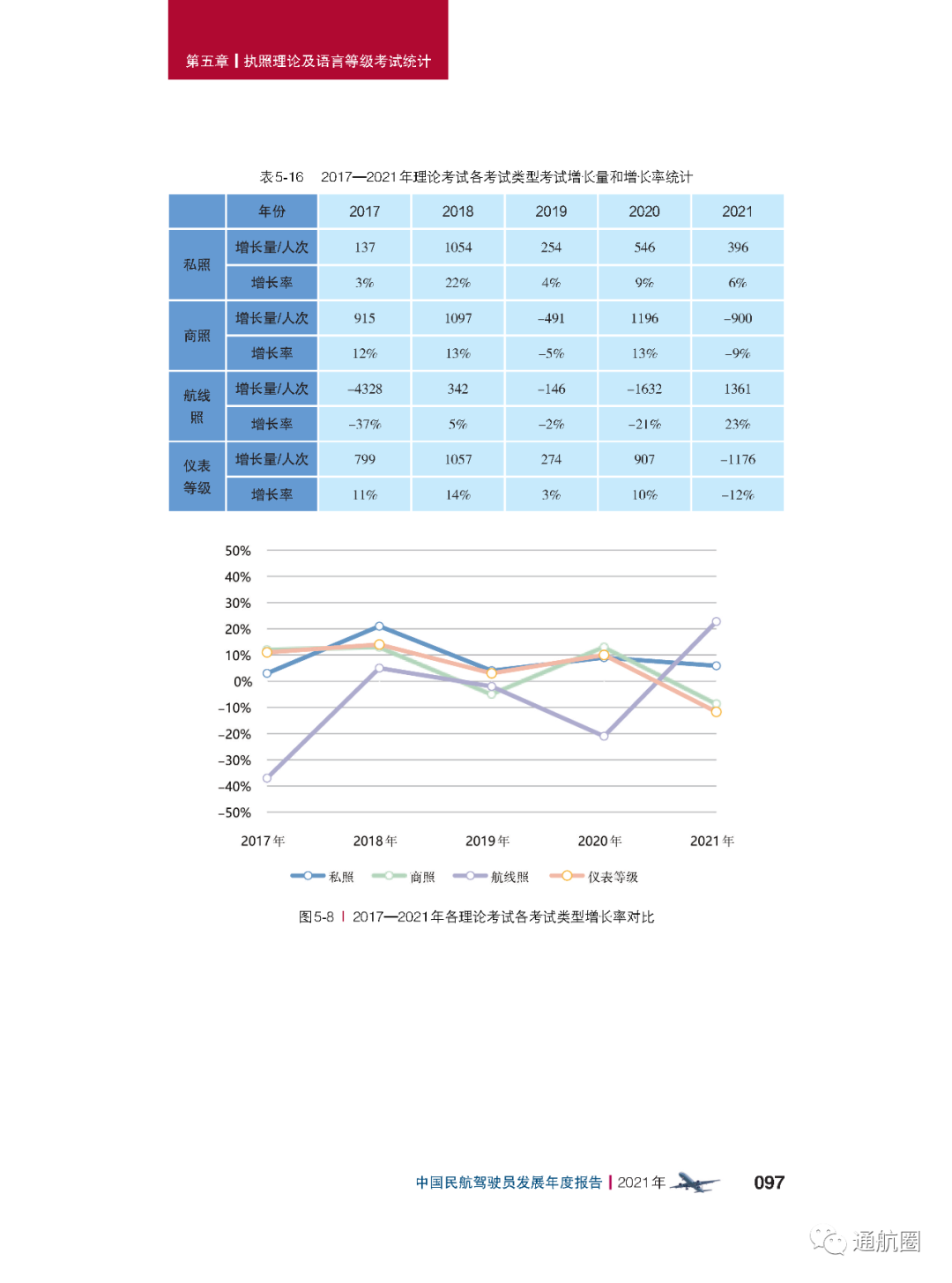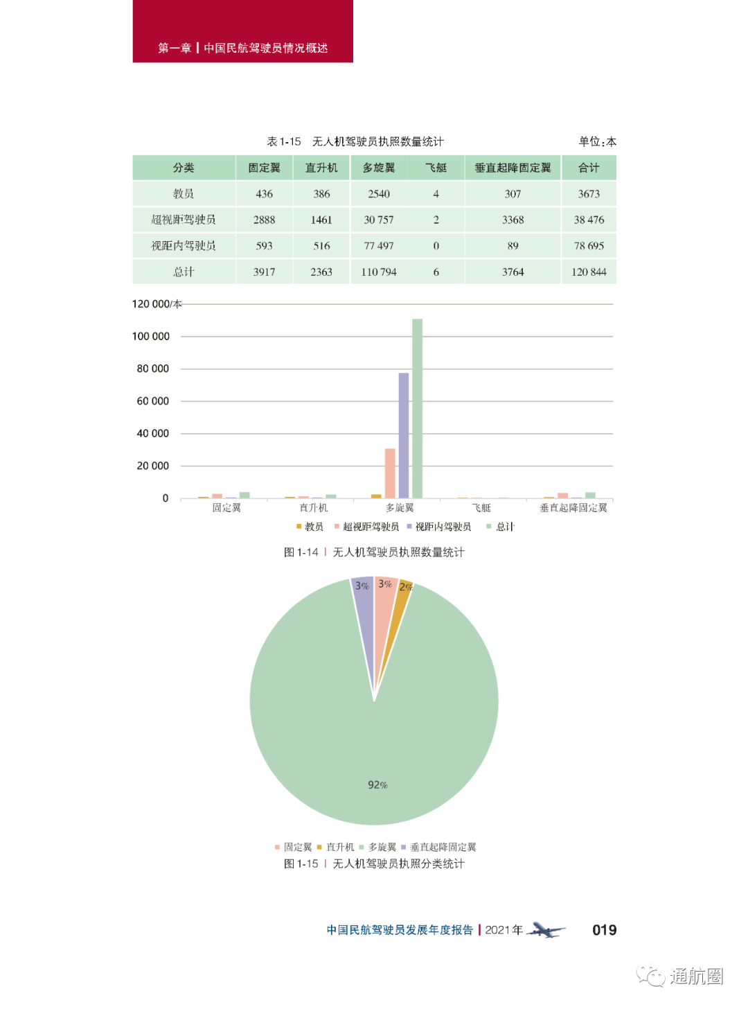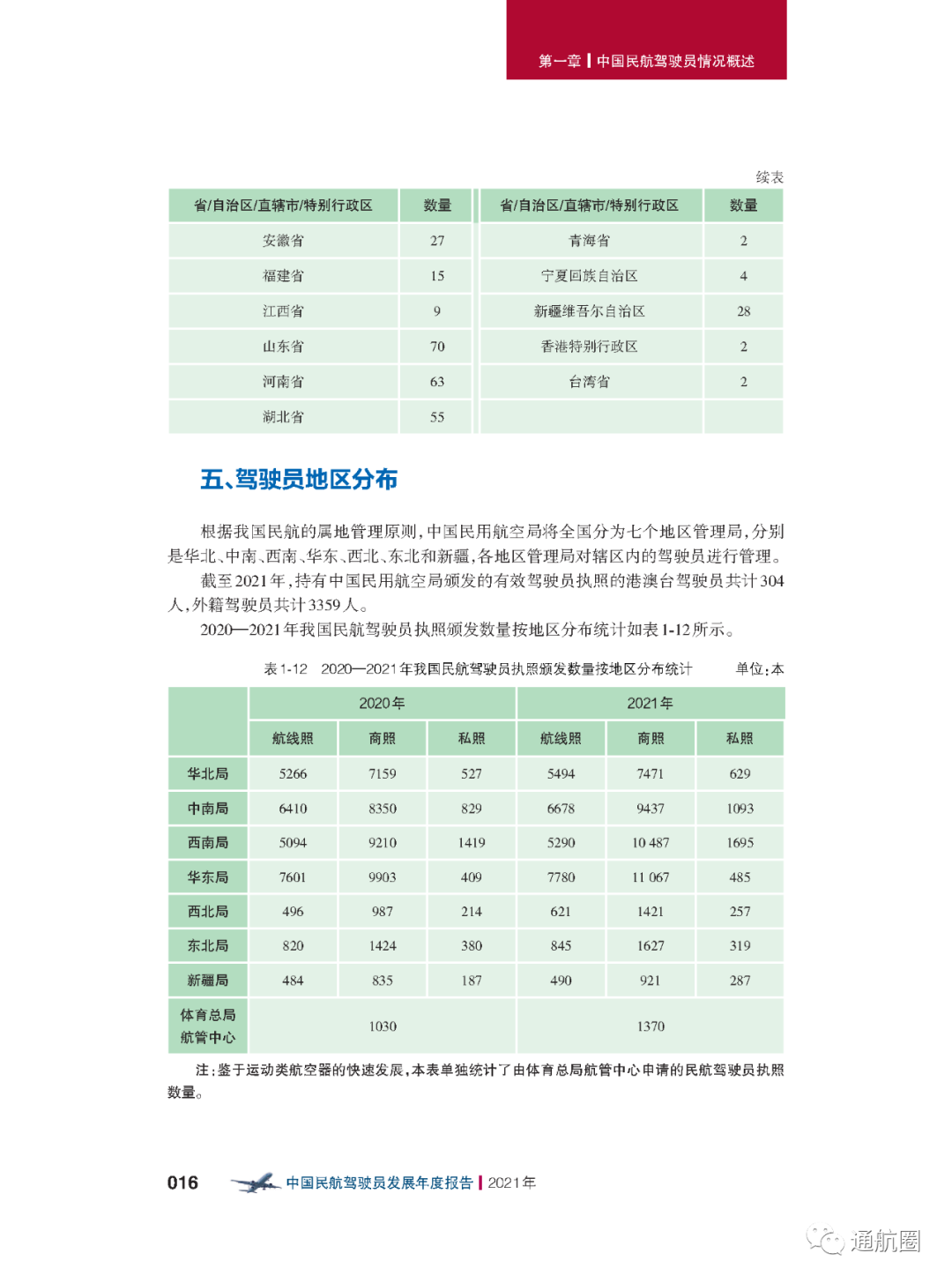 近日,民航局飞标司正式发布《中国民航驾驶员发展年度报告(2021年版)》。根据报告,截至2021 年12 月31 日,中国民用航空局颁发的有效民用航空器驾驶员执照总数为 76236 本,其中运动驾驶员执照(SPL)1515 本,私用驾驶员执照(PPL)4822 本,商用驾驶员 执照(CPL)42445 本,多人制机组驾驶员执照(MPL)187 本,航线运输驾驶员执照(ATPL) 27267 本。此外,无人驾驶航空器(无人机)有效驾驶员执照120844 本,其中超视距驾驶员执照数量为38476本,视距内驾驶员执照数量为78695被,教员执照数量为3673本,主 要分布在各民用无人机生产研发企业、相关应用单位以及大专院校等(机型分布中最多的是多旋翼无人机,而垂直起降固定翼无人机执照数为1027本)。截至2021 年,持有中国民用航空局颁发的有效驾驶员执照的港澳台驾驶员共计304 人,外籍驾驶员共计3359 人。据介绍,由于CCAR-61 第四次修订规定驾驶员执照的有效期为六年,加上新型冠状病毒肺炎疫情对飞行训练活动的影响,2020 年度驾驶员执照增速明显放缓。随着抗击疫情阶段性胜利的取得,驾驶员执照增量在2021 年大幅回升。