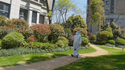 除无人机外,部分小区还用上了“风火轮”。“核酸检测还剩最后五分钟啦!”“还没有做核酸的赶紧来了!”在马陆镇希望社区某小区内,志愿者邹伟脚踩平衡车、手拿大喇叭,在楼栋之间穿梭喊话,让居民们尽快出门做核酸检测。