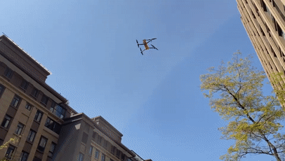 “居民朋友们,请还没有做核酸的,赶紧下楼做核酸”。随着“嗡嗡”声响起,搭载着无线喊话功能的无人机,在马陆镇白银社区党员志愿者陆蓓阳的手中腾空而起,化身为“空中广播”,在小区楼宇间飞行,喊话居民下楼做核酸检测。