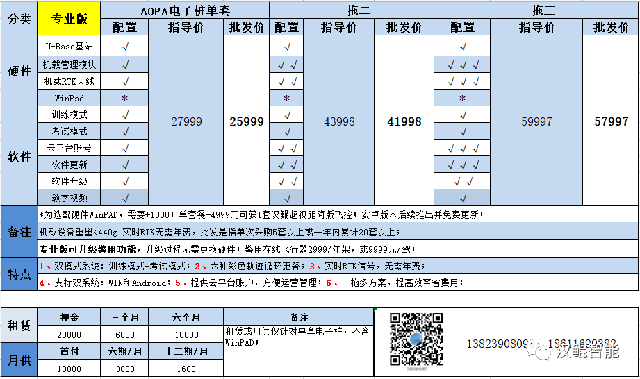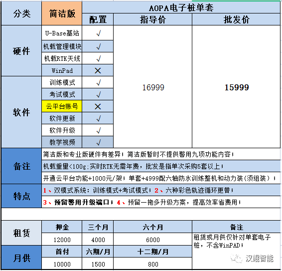 1、全系单套电子桩+4999可获得一套汉鲲超视距简版飞控,具备超视距培训功能。简版超视距飞控在保持硬件性能的前提下,硬件组成上和F系列略有差异。