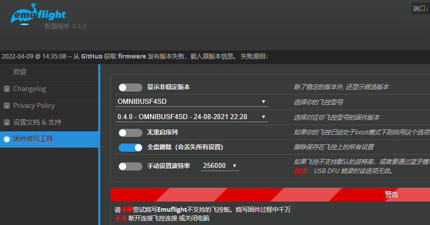 二、飞盈佳乐F4飞控能刷Emuflight固件吗?