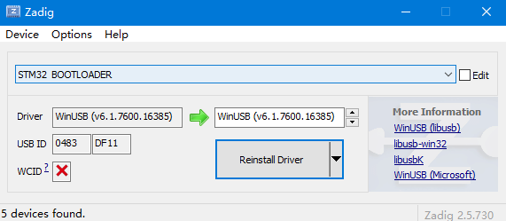 1、需要使用zadig软件更换对应的驱动,具体可以查看飞控说明书操作。