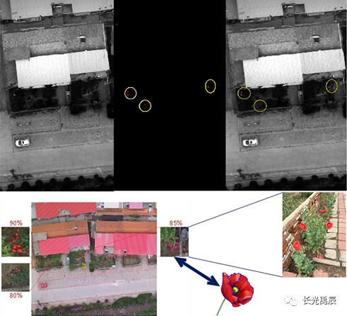 ③AI算法识别罂粟目标并标注相似度(手动模式无相似度标注,需人工交互目视识别);