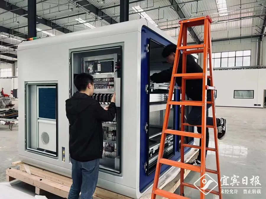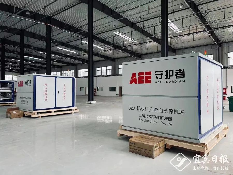 工程师正在核验无人机双机库电控设备据该公司总经理曾德森介绍,2020年3月,公司在宜宾一电航空航天产业园成功自主研发生产了全球首款5G双机库自动停机坪系统——无人机+机库+苍穹无人机管理平台,攻克了无人机全面无人化、自动化、网联化和智能化等技术难点,形成从无人机自动飞行、自动采集、综合管理系统到充换电一体化无人机机库的完整解决方案,实现了无人机7×24小时不间断作业,响应即时出勤。由于这套产品提供的航线规划、智能AI识别分析、局域网、自动实时建模等功能,可实现多机库管控、多无人机管理调度及无人机巡检数据分析,为用户提供深入业务场景的巡检、巡逻应用,并可实现在特定区域内无人机的全自动作业任务,所以上市即受欢迎。经过近一年的不断改进和努力,2022年3月起,无人机双机库自动停机坪实现了“宜宾造”,开始量产,目前已经应用在了深圳疫情防控一线,大受好评。同时,“宜宾造”的多旋翼无人机也先后服务华电集团、九寨沟智慧景区、大湾区妈湾港、深圳抗疫等多个智能巡检项目。其中九寨沟智慧景区无人机航拍项目因表现出众,被工信部授予“飞跃九寨”5G+VR网联无人机航拍景观新基础设施二等奖。