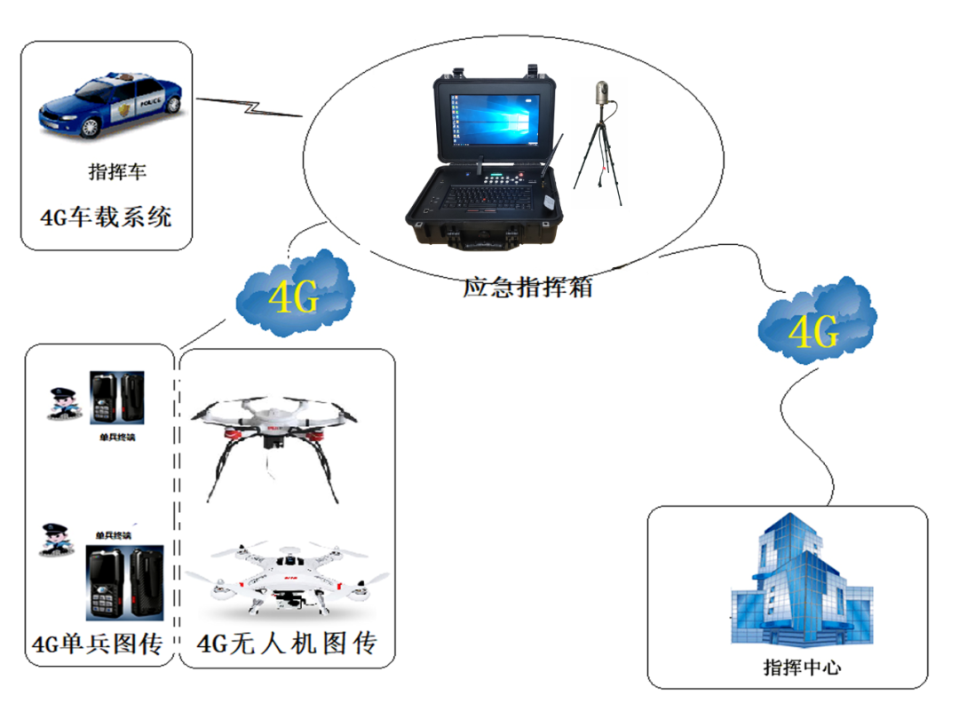 5G/4G网络子系统:保障了现场图像、到现场指挥中心/远端固定指挥中心的通信链路问题。