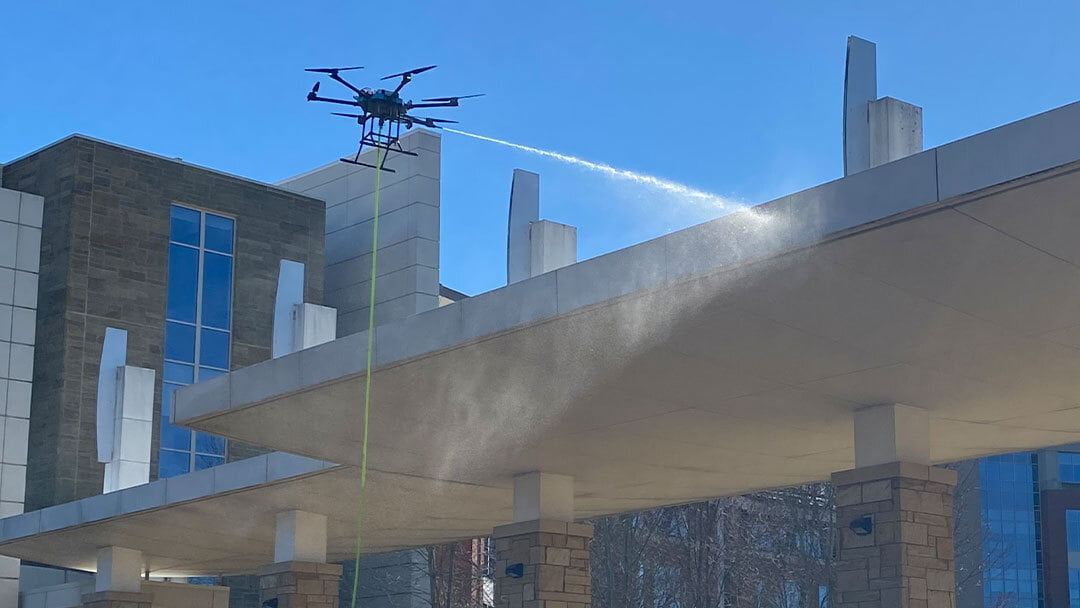 商业物业管理公司和开发商自然对保持其维护团队的安全感兴趣。但设备费和责任保险费都很昂贵。因此,户外体育场馆、酒店和大学建筑的管理者经常发现自己在寻找新的、具有成本效益的替代品。这就是工业喷洒无人机专家Lucid提供的解决方案,它的解决方案比传统的清洁方法更快、更安全。所需要的只是一架无人机、几罐清洁液和一根软管。