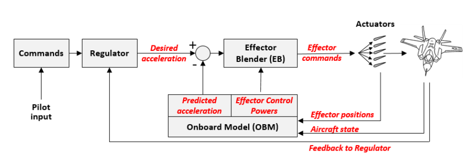 F-35是首款将非线性动态逆(NDI, Nonlinear Dynamic Inversion)作为电传飞控系统控制分配方案的量产战斗机。与使用增益调度的传统电传方案不同,非线性动态逆方法允许飞机根据体现飞机质量特性、稳定性和控制特性等机载详细模型,在飞行中确定控制分配的方案。