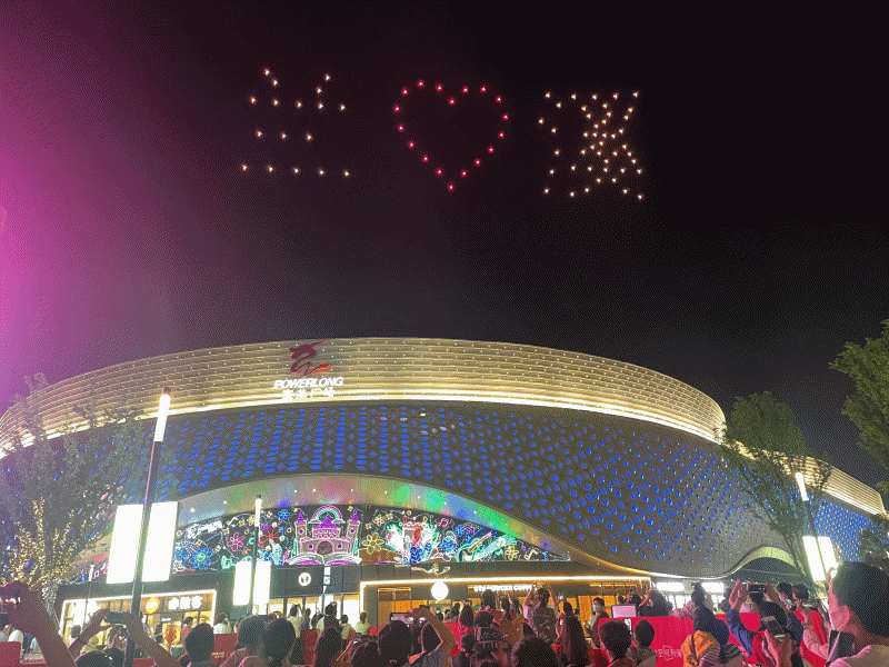 昨晚,在兰溪宝龙广场上空,百架无人机点亮了夜空。无人机编队在空中,组成了一句句深情的告白——“感恩有你”“谢谢”……炫酷的声光、暖心的情节,吸引不少市民拍照。