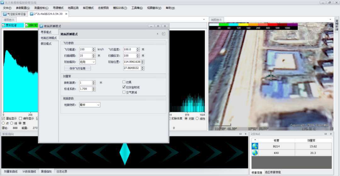 放射性航测软具有地面大面积污染巡测模式,能够将空中测量的γ剂量率等效到地面1.5m剂量率;