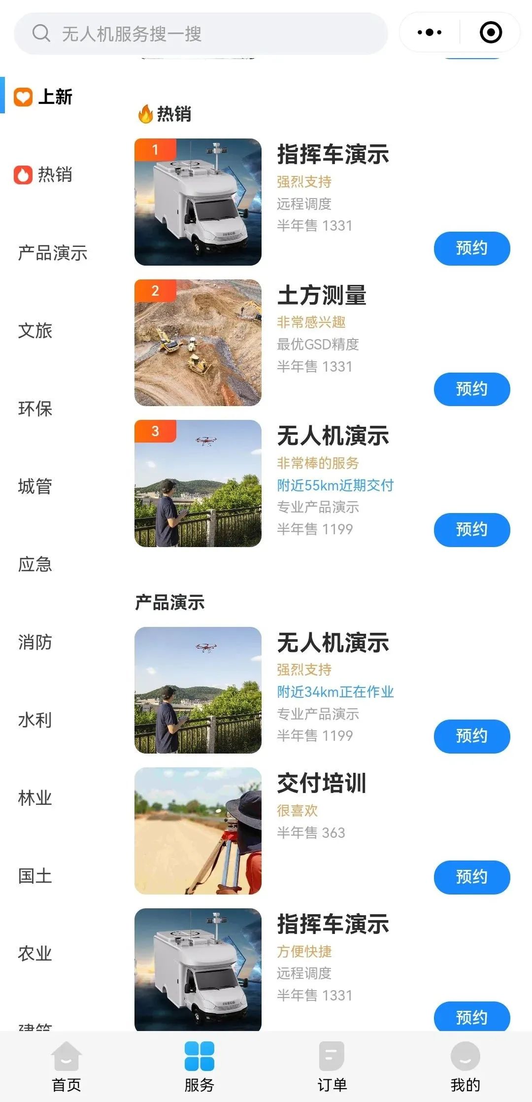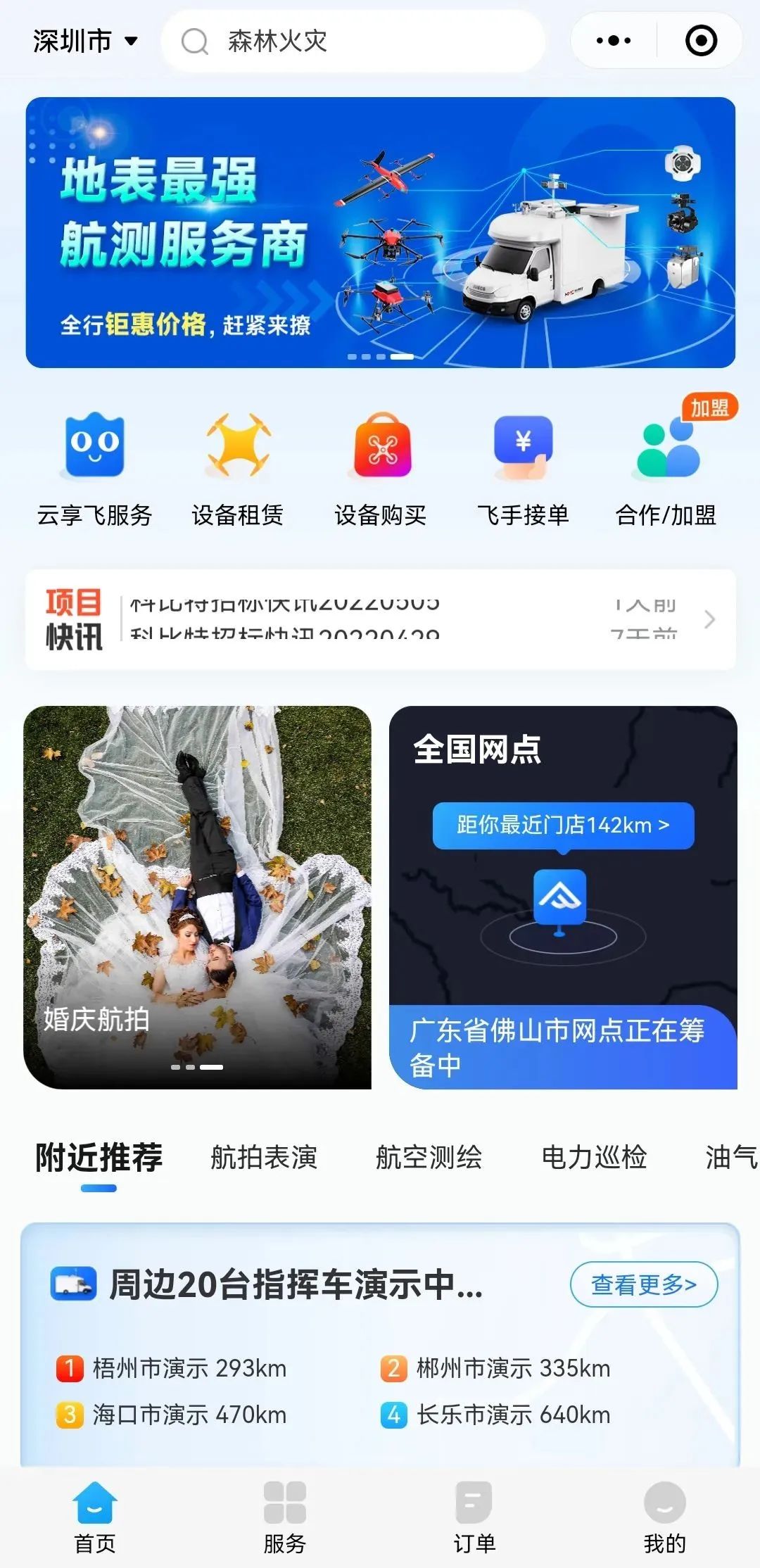 环保、应急、水利、林业、植保无人机,在云享飞的平台上,各行各业的无人机服务应有尽有。