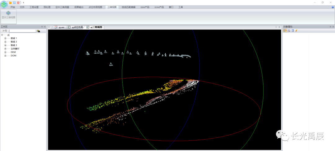 考虑成图效果与飞行效率,使用带状航线沿河道两侧飞行,同时保证单景影像中水体面积不超过1/3,航线设计与飞行参数见下图。
