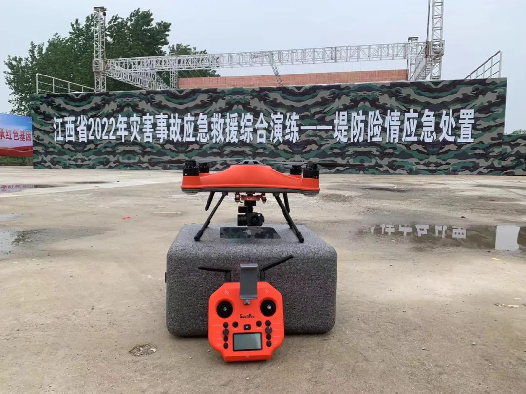 2022年5月12日,第14个全国防灾减灾日到来之际,江西省九江市开展防汛抢险救援演练。斯威普科技受邀参与,旗下水手4防水无人机首次亮相演练现场。