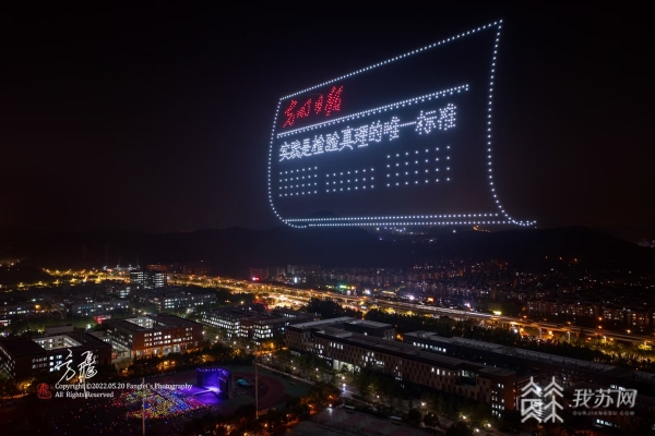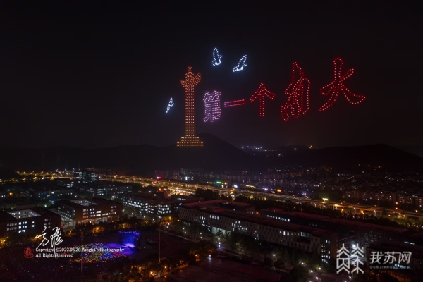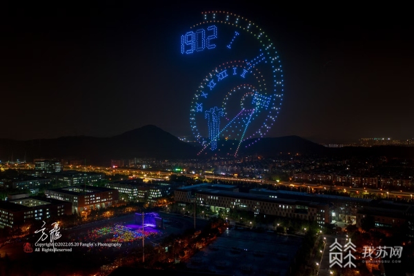 5月20日晚8点半,南京大学仙林校区上空,一场绚烂的无人机表演正在进行。表演开始,"1902" 数字高高挂起,然后开始转动,穿越双甲子来到 "2022"。