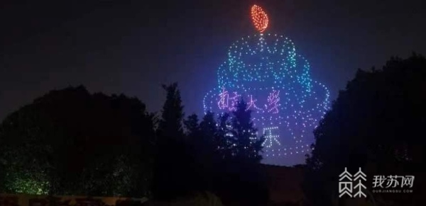无人机拼成了一个心形,可爱的蓝鲸也来祝福南大 120 岁生日快乐。